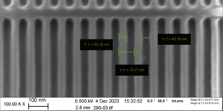 We can reliably deliver 40nm minimum line width—and that's not even the equipment's limit. According to publicly available industry data, advanced EBL systems can achieve minimum feature sizes down to 8nm and grating periods down to 40nm.